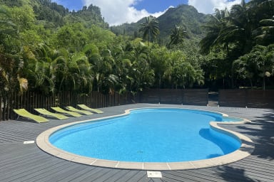 2 A/C bedroom wooden villa with pool located hillside inside Legends Residence, Moorea. Enjoy common facilities, pool, fitness room and tennis court.
