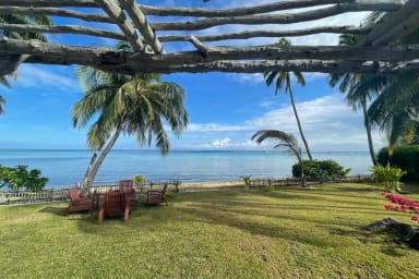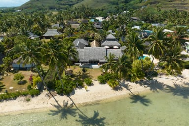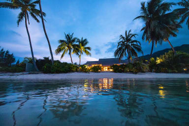 This incredible villa is located in a private gated community in Maharepa, on a white sandy beach overlooking one of the island's most beautiful lagoons.