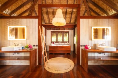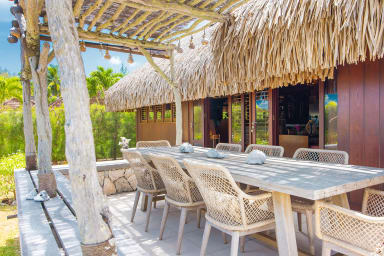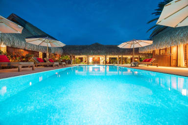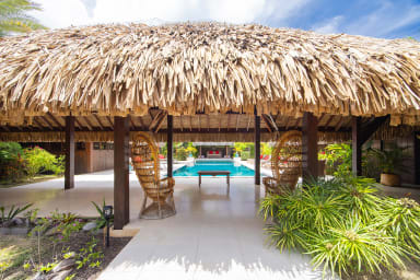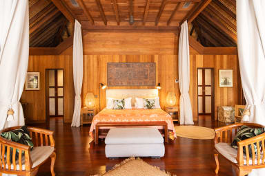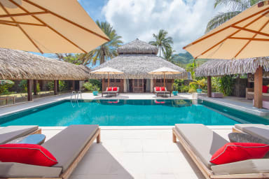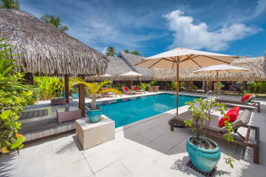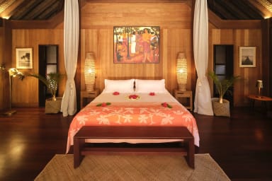 Exceptional luxury polynesian villa with infinity edge pool set on a white sand beach. 5 air-conditioned bedrooms, 5 bathrooms, Optic Fiber WIFI.