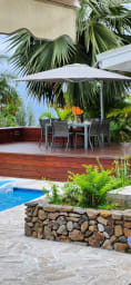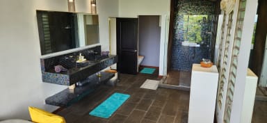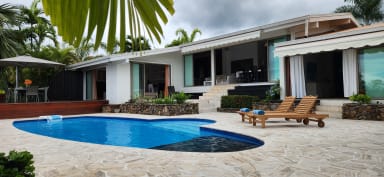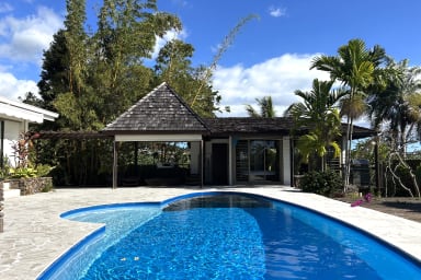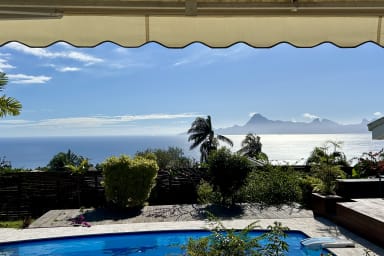 Stunning 5-bedroom mountain villa. Warm atmosphere with swimming pool and large terrace. Breathtaking views of Moorea. Ideal for large groups.