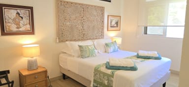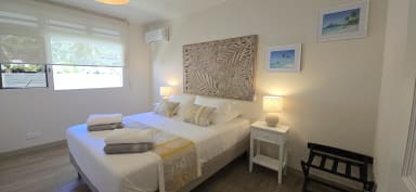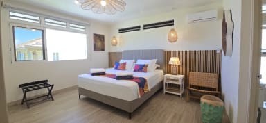 Villa Kahia can accommodate up to 8 guests in its 4 air-conditioned bedrooms, all fitted with premium bedding (2 king-size beds and 2 queen-size beds). It also has 3 modern bathrooms, an outdoor shower, and all the amenities required for a comfortable stay. For added flexibility, it is also possible to rent two extra single mattresses if needed. Each bedroom is equipped with an individual safe, and the property is also secured with an alarm system and external camera. The fiber optic connection guarantees stable Wi-Fi throughout the house.