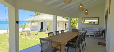 -The unique seafront location of this high-end vacation rental, with white sand beach and turquoise lagoon.