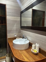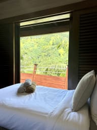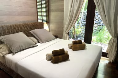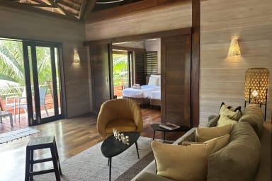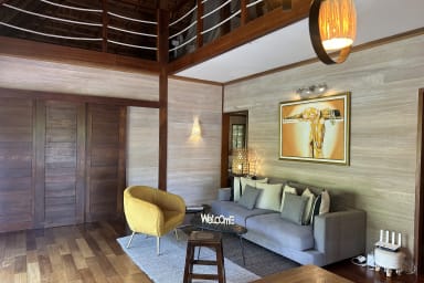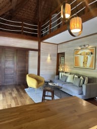 Entirely built of wood and inspired by Balinese style, the villa charms guests with its warm atmosphere, natural lines, and seamless integration into the tropical environment.