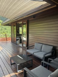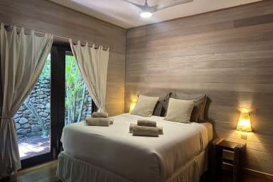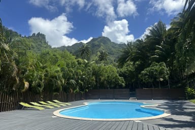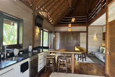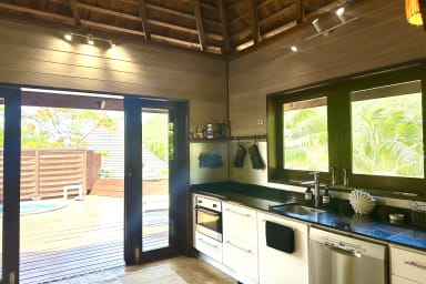 Designed on a single level, this vacation rental offers a smooth and pleasant flow, ideal for fully embracing the relaxed Polynesian lifestyle. It features a modern, bright, and fully equipped kitchen, perfect for preparing and sharing memorable moments. Outdoors, the terrace boasts a furnished patio, ideal for al fresco dining, as well as a non-heated outdoor hot tub, perfect for unwinding in the tropical climate. With no overlooking neighbors, the villa offers stunning views of the surrounding tropical vegetation, ensuring peace and privacy.