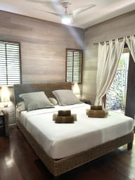 Private chef, in-villa massages, private yoga classes, and water activities such as scuba diving, kitesurfing, snorkeling with blacktip reef sharks and rays, surfing, and more.