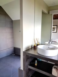 Le premier étage comporte une chambre à coucher avec deux lits superposés, une autre chambre équipée d'un lit double (160 x 200) et d'une salle de bain partagée ainsi que de WC indépendants