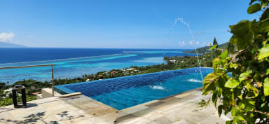 Spectaculaire villa avec piscine sur l'île de Moorea . Location de vacances avec vue incroyable sur le lagon. 5 chambres, 4 salles de bain.