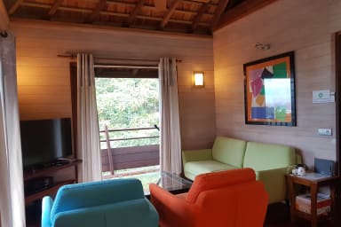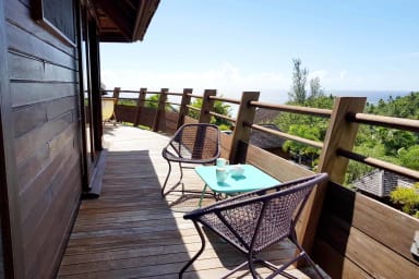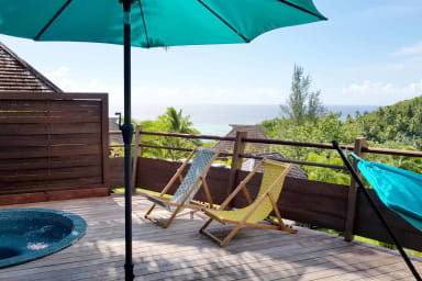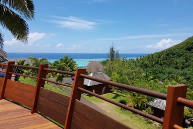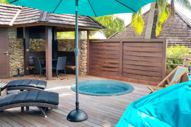Villa de standing en bois avec Jacuzzi, 2 chambres climatisées flanc de colline au sein de la Résidence Legends au Nord-Ouest de Moorea...