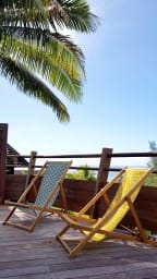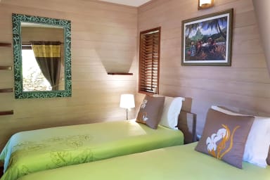 La Villa Anuanua dispose de 2 chambres climatisées (1 lit king size et 2 lits simple) et d' 1 salle de bain, avec une belle vue sur la montagne et la mer.