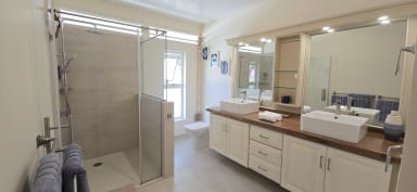 Elle dispose également de 3 salles de bains modernes, d’une douche extérieure et de toutes les prestations nécessaires pour un séjour confortable.