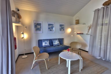 Chaque bungalow, d’une superficie de 38 m² avec terrasse privée de 12 m², offre un espace intime et apaisant propice à la détente, au télétravail ou à l’expérience de la “Slow Life” à la tahitienne.